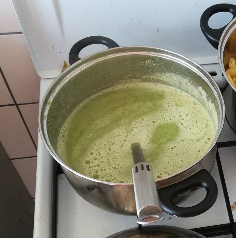 Het gaat goed met mij. Voelde gisteravond al dat het zware gevoel in mijn buik weg zakt. Het gevoel had gelukkig niks met het eten te maken, maar als er in je buik geopereerd is of zelfs na een bevalling heb je het gevoel dat als je gaat staan je ingewanden ineens zakken. Nou dat gevoel zakt dus mooi weg. Maar de verveling slaat toe. En ik heb nog niet de concentratie om te gaan lezen. Dus heb ik weer een soepje voor mezelf gemaakt. Broccoli soep lekker kan ik een beetje afwisselen. En voor mij zoon een hele grote pan pasta.