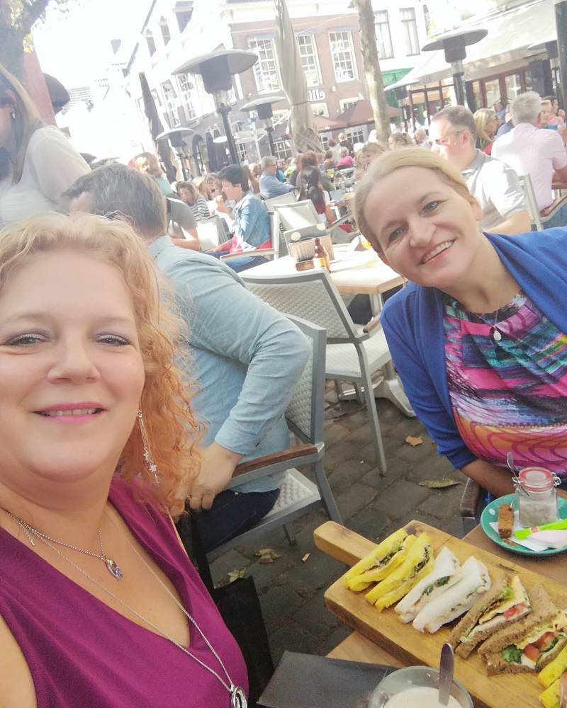 Vanmiddag een heerlijke middag met mijn allerbeste en alleroudste vriendin gehad in Breda. Wij kennen elkaar al meer dan 40 jaar en ze wilde nog even lekker genieten van wat lekkers voor de operatie. Dus we hebben een heerlijke sandwich plank bestelt en hoe lekker kan brood zijn als je weet dat je het voorlopig niet meer mag eten. Nou heerlijk was het.