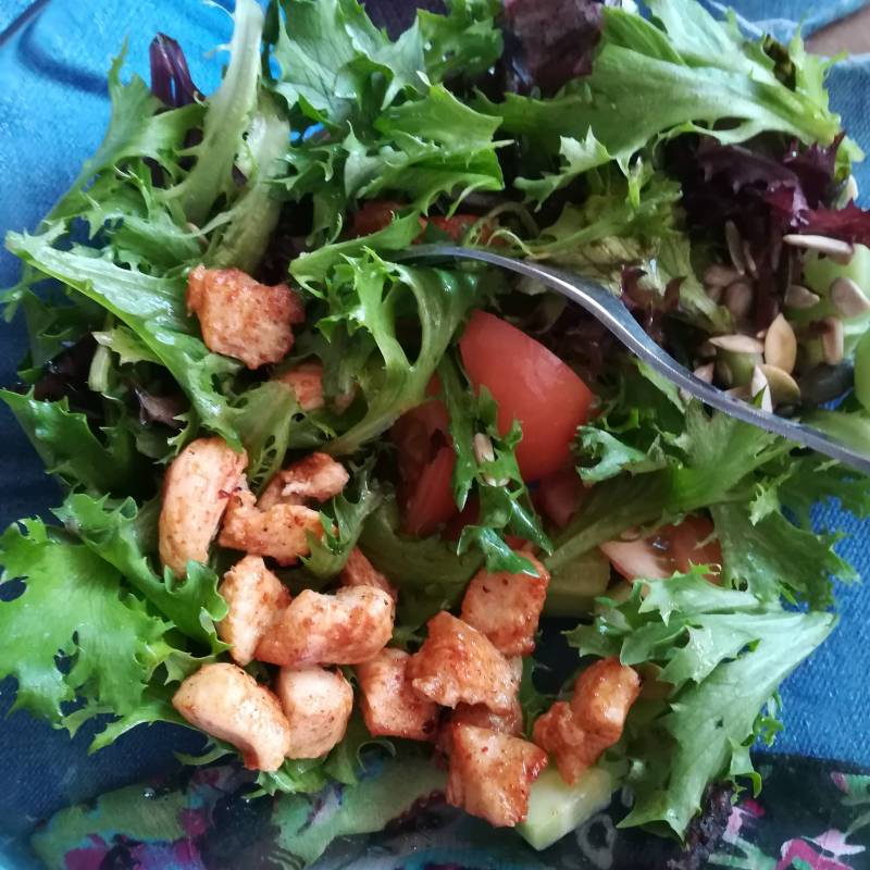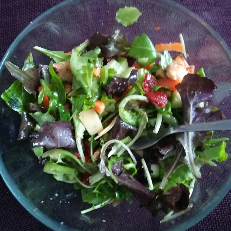 Ojee ik had een mini dipje vanmiddag ik had echt even zin in wat anders wat lekkers . maar ik heb me herpakt. Nou had ik ergens gelezen dat je courgette kon invriezen dus dat deed ik met de courgette spaghetti maar toen het ontdooid was was het pap dus toen moest ik omschakelen en omdat ik nog maar 2 dagen dieet te gaan heb en ik nog een salade voor donder gepland had staan werd het die vanavond. Mede door het voetbal ben ik vergeten een foto te maken.